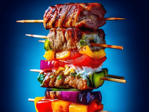 Vegetables, fruits, meat and other barbecue contents are waiting for you to choose.